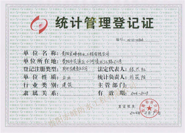 宏峰公司属国家防水防腐保温工程专业承包贰级资质企业,经贵州省住房和城乡建设厅考核合格